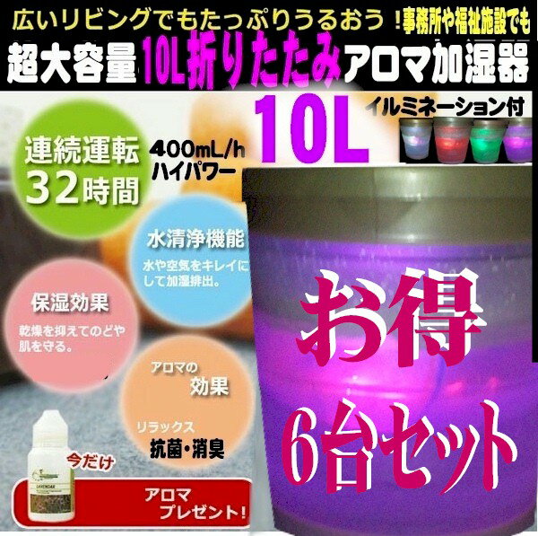 新製品 国内最大容量折りたたみ10Lアロマ加湿器 バケツパワーアップ 国内大容量加湿器 お得6台セット 40L 2400mL/h 小型換気送風ユニット付きになりました 抗菌消臭アロマ付 新製品自作の市販のシールでハロウィン風にもできます 完全バケツタンクレスになり水漏れなしなんと国内大容量10Lアロマ加湿器で長時間400mL/hハイパワー加湿。