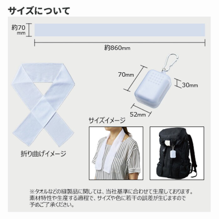 カラビナ付きのケースなので、バッグにつけて手軽に持ち歩くことができるので、暑さ対策におすすめのクールグッズです。
