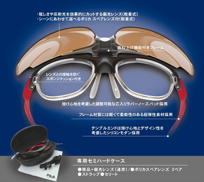 薄型非球面レンズ付【FILA(フィラ)SF8932JL 全6色 跳ね上げ機能付スポーツサングラス 度付対応インナーフレーム付】デザインコレクションメガネセット(伊達メガネ・近視・乱視・老眼・遠視)