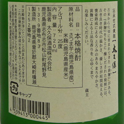 【本格芋焼酎】太久保酒造 鹿児島県(大久保酒造)『 伝承古式黄麹 太久保 25度 720ml箱付 』御中元 残暑見舞い 御歳暮 御年賀 内祝い母の日 父の日 敬老の日 誕生日プレゼントにバレンタイン ホワイトデー クリスマス