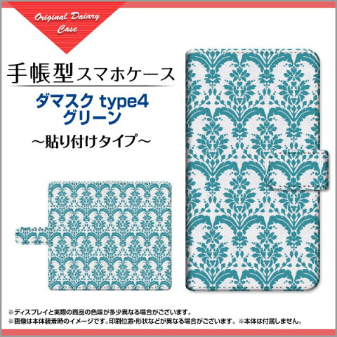 液晶保護ガラスフィルム付 Mi Note 10 Pro 対応 Xiaomi シャオミ 手帳型 スマホケース 貼り付けタイプ ダマスク type1 グリーン 定形・定形外郵便 送料無料 [ ダイアリー型 ブック型 ]
