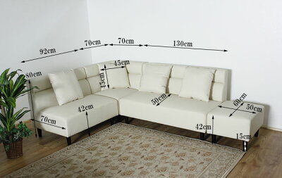 梱包サイズ2P大+OT:W135cm×D75cm×H70cm コーナー+2P小:W168cm×D80cm×H70cm テーブル:W145cm×D85cm×H25cm素材再生皮革、ファブリック、 木枠、鋼製Sバネ、 ウェービングテープ、高密度ウレタンフォーム、 シリコンファイバー 生産国:中国送料送料無料。